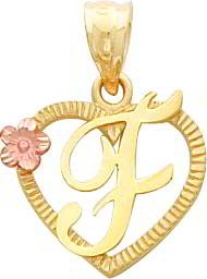 --> Details : 14K Two Tone Gold Initial F Heart Charm